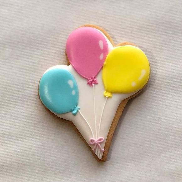 カラフルな風船が3つ並んだアイシングクッキーです。