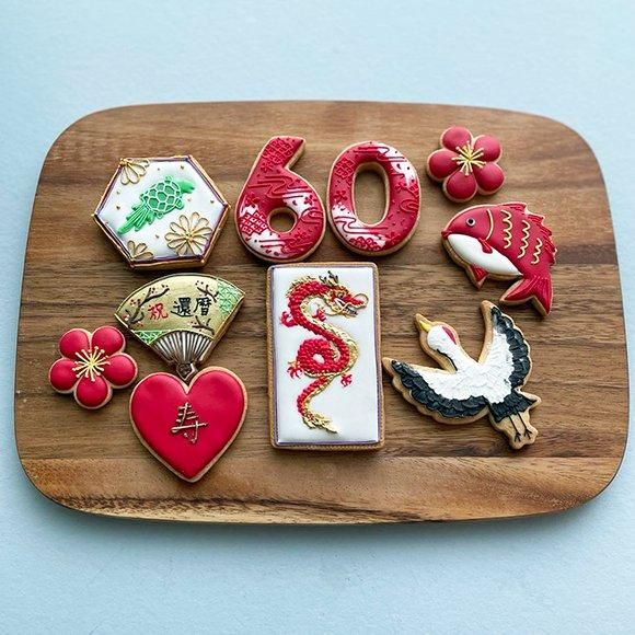 長寿のお祝いにふさわしいアイシングクッキーのギフトセット。